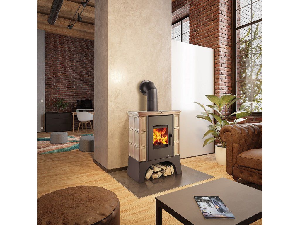 EBOLI AL II jsou prémiová krbová kamna s vestavěným výměníkem tepla a vychládzecí smyčkou, která zajišťují maximální efektivnost vytápění. Elegantní design s tabakovými kachlemi a černým podstavcem se bude vyjímat v každé obývací místnosti.