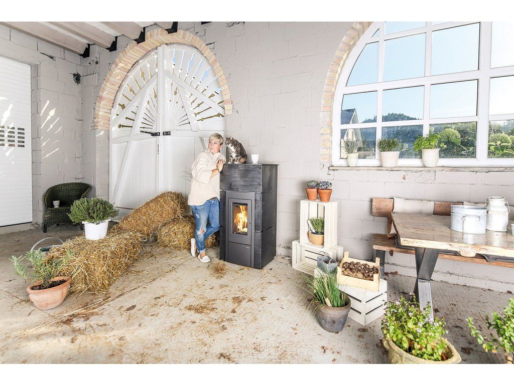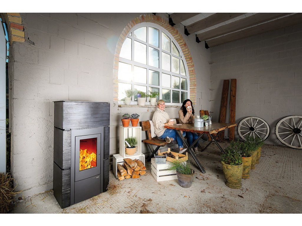 Kamna HSP 6 RUEDA jsou ideální volbou pro majitele domů a bytů, kteří chtějí kombinovat moderní design s automatickým topidlem. Metalický kachlovací obklad v antracitové barvě se hodí do současných interiérů. WLAN ovládání ocení všichni, kdo si ceňují pohodlí a možnost regulace vytápění na dálku.