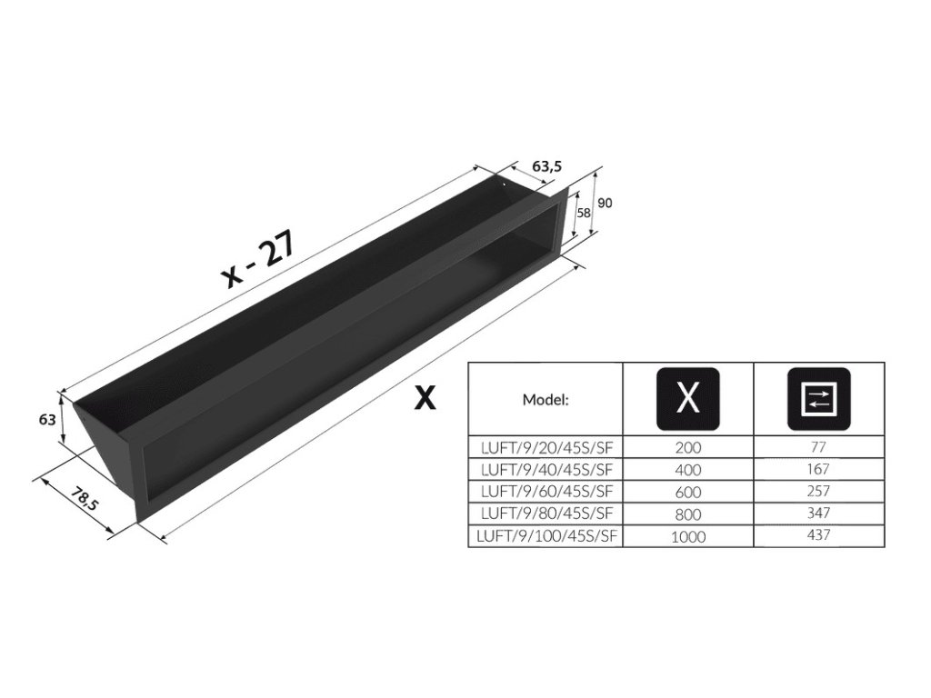 Luft se vyznačuje moderním a minimalistickým vzhledem. Štěrbinová mřížka má maskovanou přívod vzduchu.