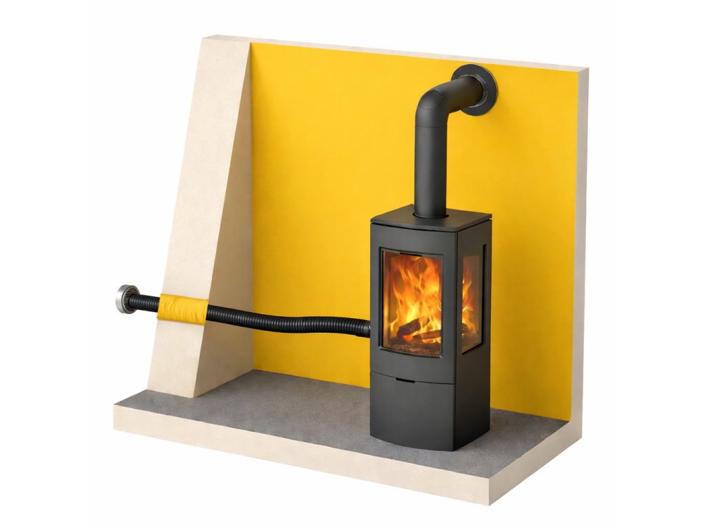 Set pro napojení přívodu externího vzduchu. Vytváří uzavřený spalovací systém a tak pro hoření kamna neodebírají vzduch z místnosti.