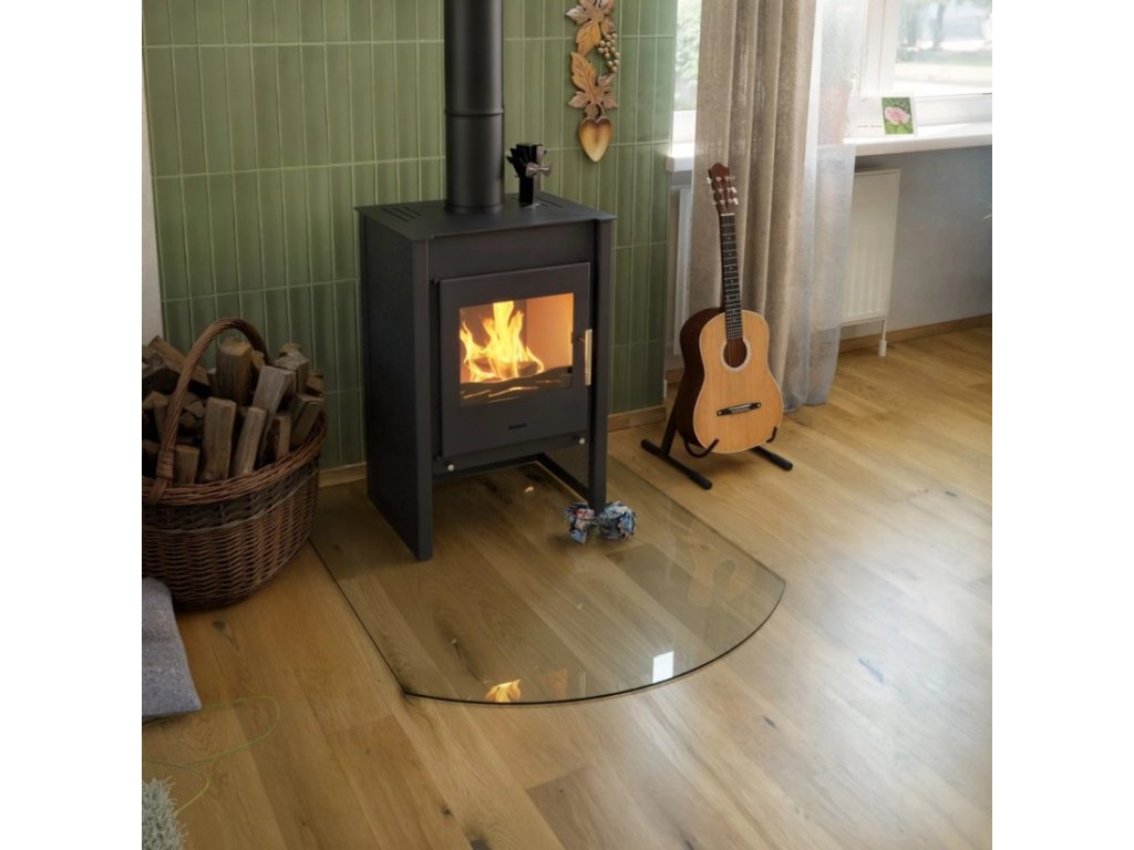 Sklo pod kamna má zaoblené hrany.