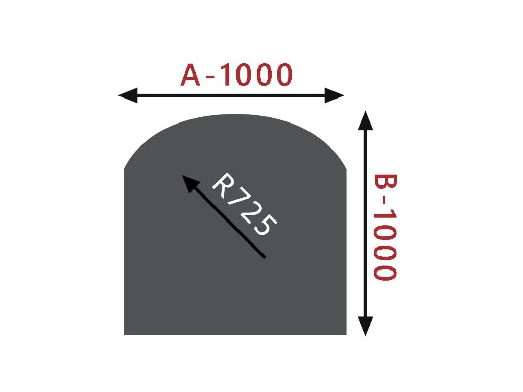 Sklo pod kamna Oblouk 1000x1000 mm / R725 / 8 mm